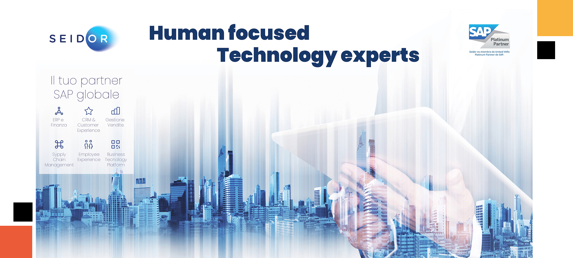 La multinazionale SEIDOR, leader mondiale nel settore della consulenza tecnologica e presente in Italia con le sedi di Bologna e Milano, partecipa a SAIE per presentare le soluzioni gestionali innovative sviluppate per aumentare la produttività e stimolare la crescita del settore edile. Nel quadro della transizione digitale ed ecologica in atto, SEIDOR guida le aziende, da oltre 40 anni, nella creazione di un ecosistema intelligente, integrando in un’unica piattaforma ERP soluzioni evolute per l’analisi dei dati, cloud computing, Intelligenza Artificiale, apprendimento automatico e Industrial Internet of Things.